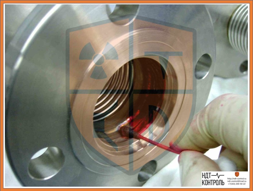 Цветная дефектоскопия сварных швов выполняется в соответствии с требованиями ГОСТ 18442-80 по специальным методикам, специалистами, которые хорошо знают нюансы проведения такого метода и безошибочно определяют дефектные места и плохо подогнанные детали.