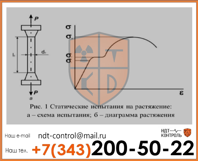 Статические механические испытания – один из наиболее распространенных методов разрушающего контроля. Статическим испытаниям подвергаются как отдельные детали, так и различные конструкции из разнообразных материалов с целью определить механические свойства изделий и их пределы прочности, что позволяет проверить соответствуют ли их механических качества указанным в проекте или ТУ, по которым они изготавливались. Так как при испытании материал подвергается разрушению, то для осуществления механического контроля берется образец, который может быть отрезан от основной конструкции, либо сваривается дополнительная контрольная пластина.